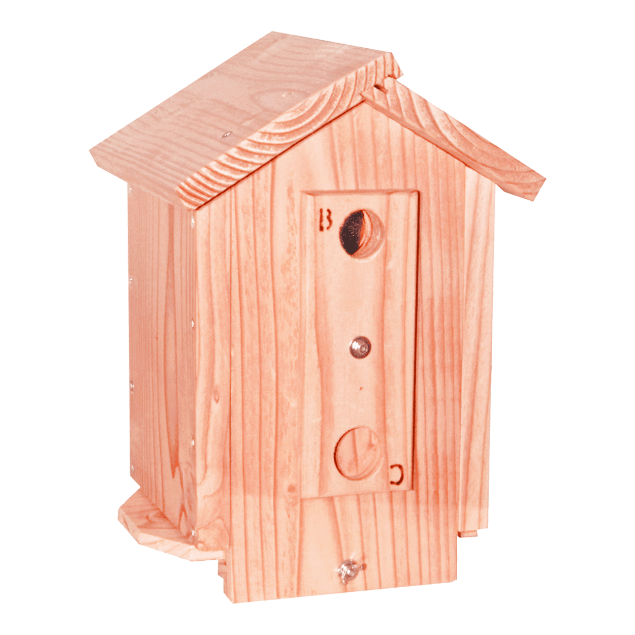 Modèle phare de l'entreprise, ce nichoir est un véritable palace pour la majorité des espèces cavernicoles. Possédant un trou d’envol modulable, il synthétise à lui seul toutes les exigences imposées par les experts. Installé dès l’automne, cet ultime concept se prévaut d’un taux de réussite exceptionnel.